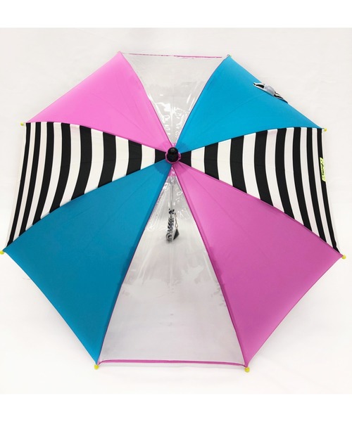 ボーダーとカラフルな無地生地がポイントのクレイジーパターンのカサ