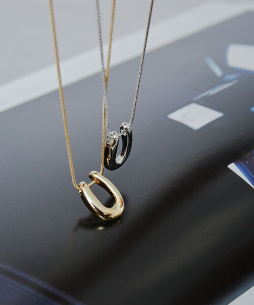 U型のモチーフに、しなやかな光沢が美しいチェーンを通したデザイン。