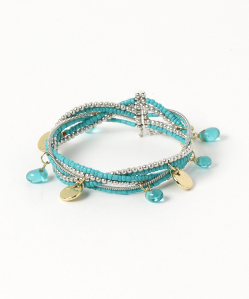 コイン型チャームやビーズがエスニック感を演出してくれるバングル。