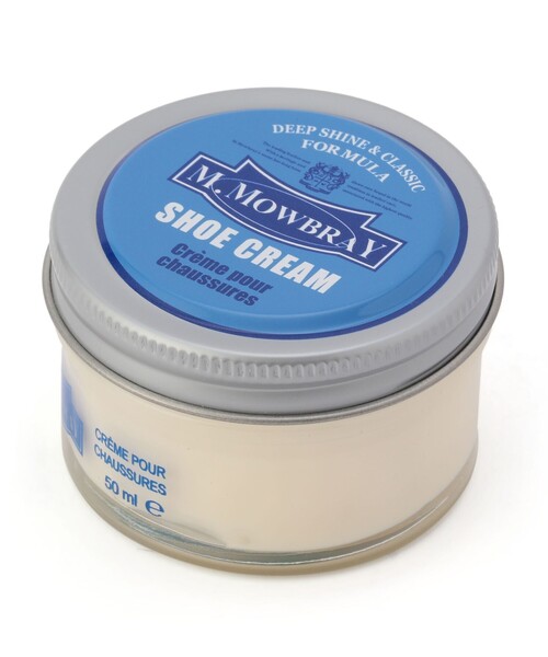 ガラス瓶にブリキのキャップは本格派が認めるシュークリーム。クリームの伸びとなめらかさ、光沢感と補色力、どれもが納得の名品です。色を選ぶ際は靴の色と同色か若干薄い色のクリームを使ってください。