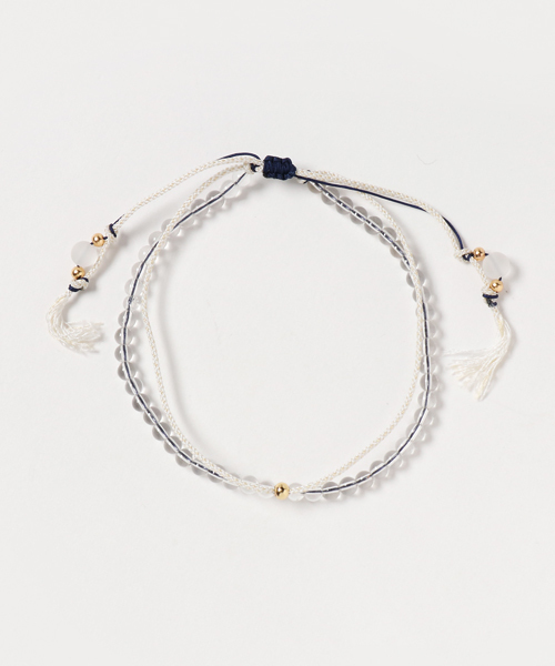 程良いしなやかさと艶のある光沢感が魅力の絹紐・京都組紐と、4月の産石・クリスタルを組み合わせたカジュアルで上品なアンクレット。左右に紐を引くとサイズ調整できます。ご自身用にはもちろん、ギフトにもおすすめのアクセサリーです。