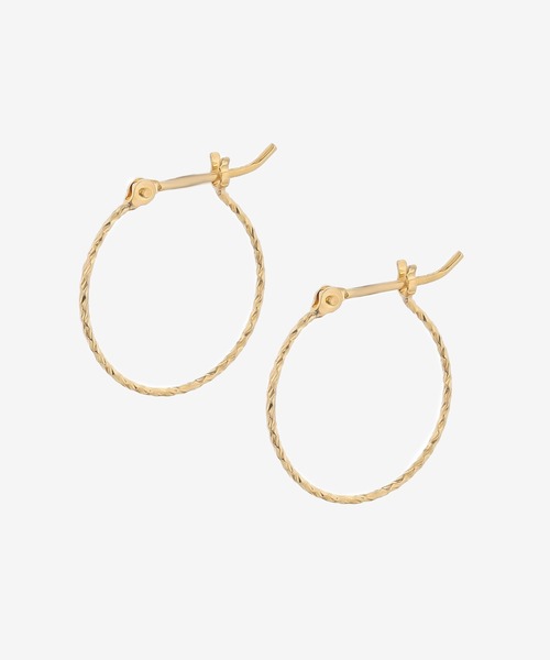 シンプルなイエローゴールドのフープピアス。