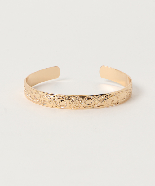 中央のガラス石を持ったホヌがポイント。ハワイアンジュエリー調のメタルバングル。手元を大人っぽく爽やかに彩ります◎