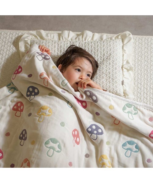 シャンピニオン(きのこ)柄がキュートなガーゼケット。
