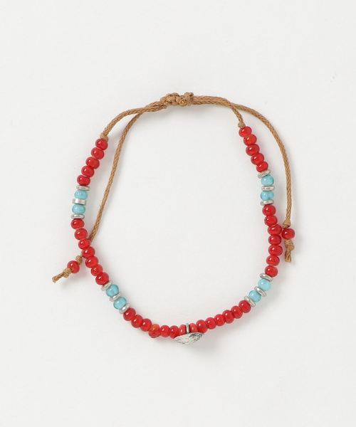 ネイティブアメリカン調なホワイトハーツ風ビーズとメタルコンチョを組み合わせたシンプルなアンクレット。細身で色鮮やかなデザインで、デイリーに着けやすい仕上がりです。足元のアクセントに◎