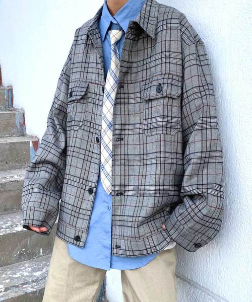 ゛トレンド感のあるスウィングトップとタータンチェックで今っぽく着こなせるビッグシルエットシャツジャケット!゛