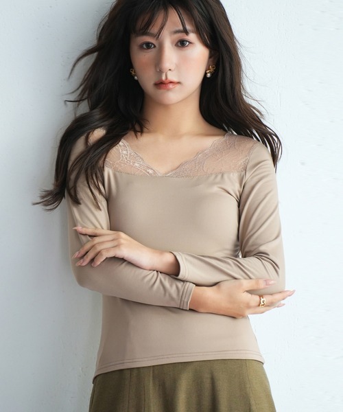 首元はVネックとスクエアネック、前後どちらでも可愛く着こなせて、レースの存在感でコーデが華やぎます。