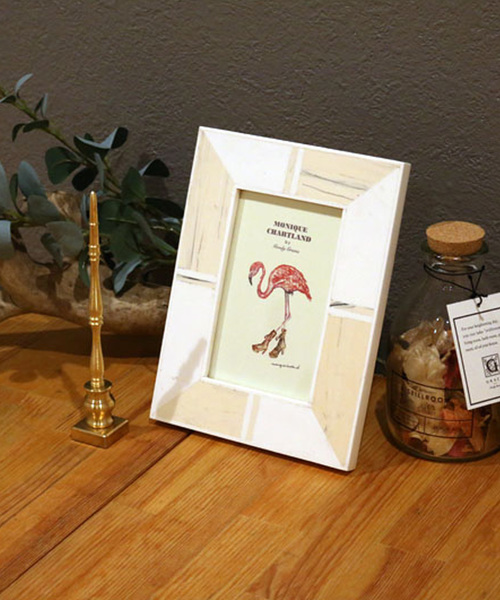 ナチュラルな色合いが清潔感のある爽やかなお部屋に合うデザインになっています。フォトフレーム内の絵台紙はランダムで絵柄が変わる場合がございます。