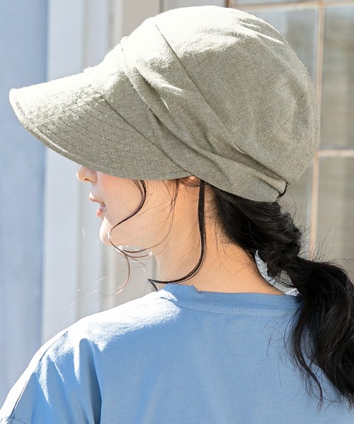 後ろにタックを付けることで、被るだけで綺麗なフォルムに仕上がり、崩れにくくなっています。