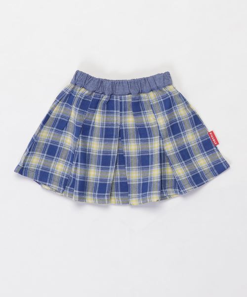 柔らかな先染めチェックを使用したボックスプリーツスカートは、動いた際のシルエットもキュートな嬉しい1枚!Tシャツはもちろん、ふんわりシルエットのトップスとも相性抜群!着回し易いうれしい1枚です。レッドとブルーの2色展開です。ピスネーム付。ウエストゴム仕様、ゴムの取り替え口付き。