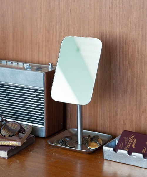 毎日が、少しだけ快適になるかもしれない鏡の前で毎日すること。メガネをかける。ピアスを付ける。ネックレスを付ける。前髪にクシを通す。リップクリームをつける。口紅を塗る。だから、鏡にトレイを付けました。ほろ酔いのバーで会ったあの人の名刺も、ここに置いておけば忘れません。あなたの毎日が、より愛すべき毎日になります様に。