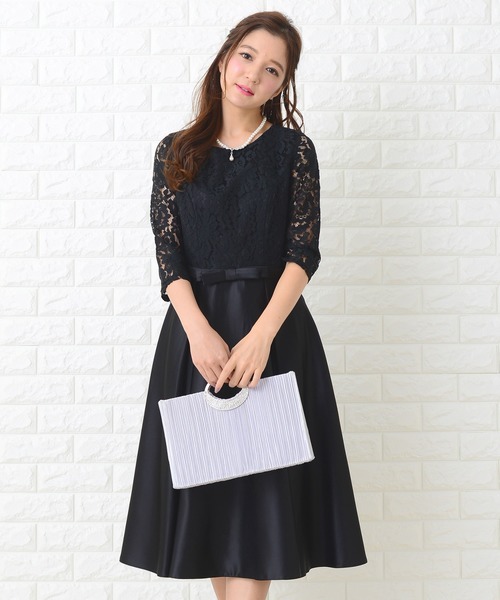 ウエストリボン付き切り替えAラインワンピース・ドレス