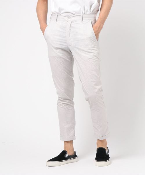 2タイプの柄から選べるストレッチアンクルパンツ。