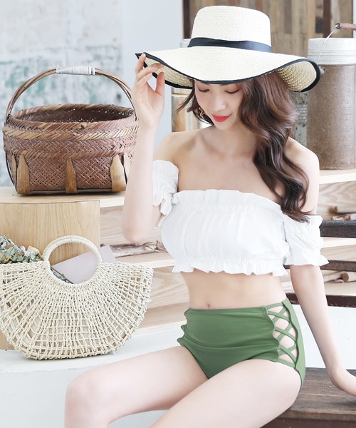 フリルビキニ(オフショルダー) サイドストラップショーツ