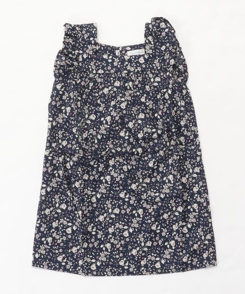 - スクエアネックの襟元にギャザーを寄せたガーリーデザイン
