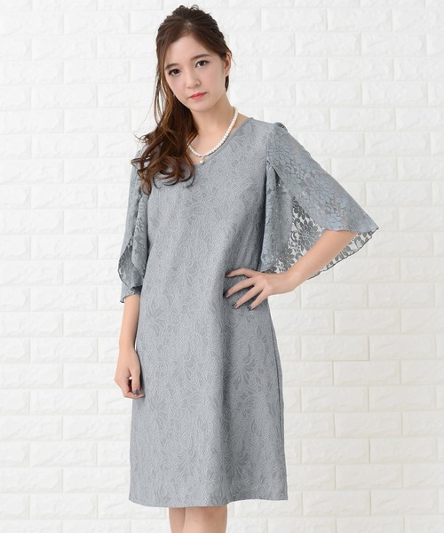 花柄レーススリーブ膝丈ドレス・ワンピース