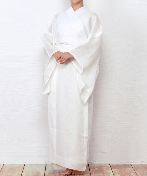 麻のソフトな手触りとサラサラ感、半衿付きですぐ着用できます。