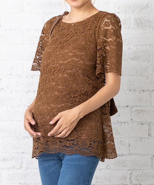 授乳にも便利な授乳トップスにタンクトップを重ね着すると、エレガントな総レースブラウスに早変わり!