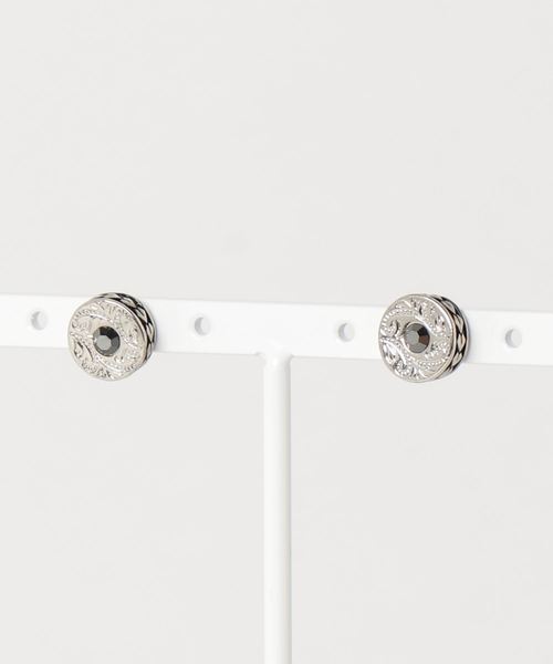 ポリネシアに代々伝わるトライバル模様を施したメタルピアス。力強いポリネシアの柄とハワイアンジュエリー調の柄で存在感のあるデザイン。正面とサイドで異なる柄をあしらいました。