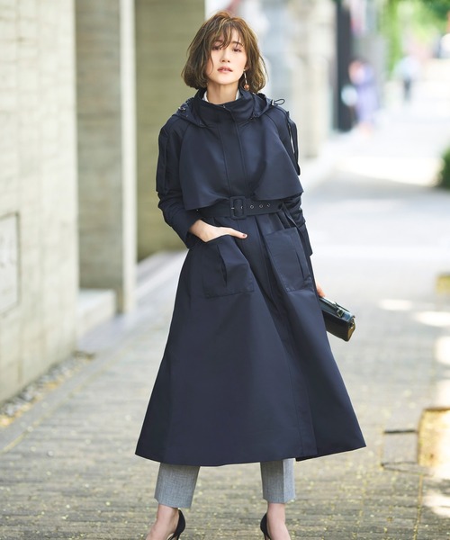 撥水加工を施し、アレンジの効いたディテールが魅力のトレンチコート。