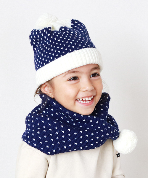ジャガードニット帽。同素材のスヌード・手袋と一緒にホリデーシーズンのギフトにおススメのアイテム。