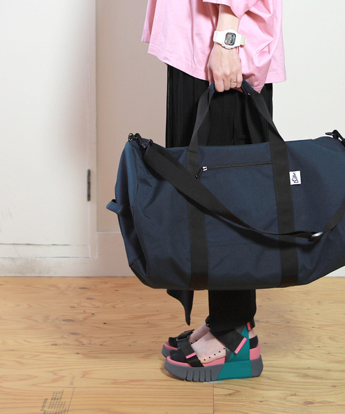 ※ラージサイズのダッフルバッグ。取り外し可能なショルダーストラップ付き。外側正面、内部にそれぞれファスナーポケットが付属。外側には取り出す頻度の高いパスケースや携帯等、内側には小物をまとめて収納が便利。さらにはサイドにスナップボタン式のポケットが、反対側にはハンドルも付いています。スタンダードなドラム型バッグですが、細かい配慮が効いた完成度の高い商品。