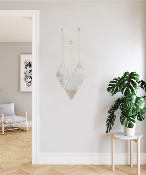 3つのダイヤ形のミラーを組み合わせることにより、さまざまなパターンで壁に掛けることができます。