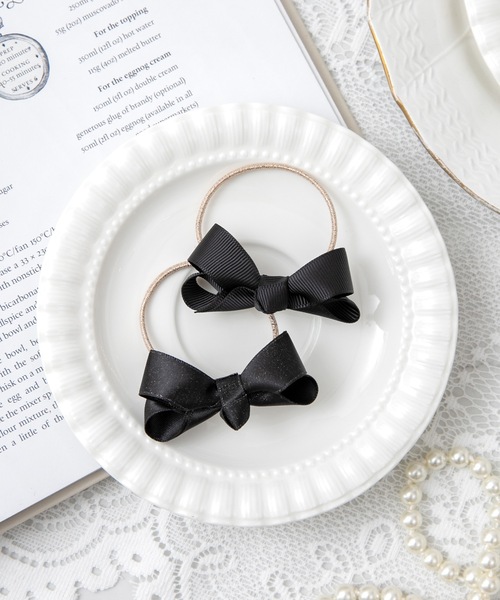 グログランリボンがリッチな雰囲気のリボンヘアゴム。小さなお子様のセレモニースタイルにもおすすめ。