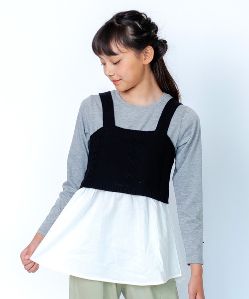 120:身幅トップス:34,ニット:30 肩幅トップス:25.5 着丈トップス:48.5 総丈ニット:31 そで丈トップス:40.5
