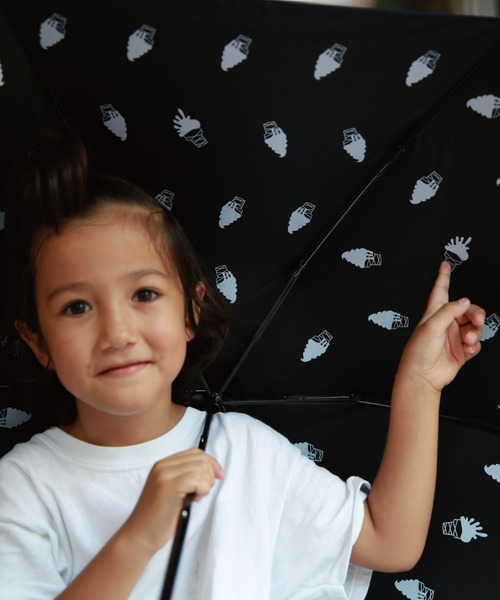表は鮮やかな発色、裏はバイカラー(PUコーティング)にポップなプリント。UVcut率99.9%の晴雨兼用折りたたみ傘。鮮やかな傘は存在感を発揮。巾着袋付き。