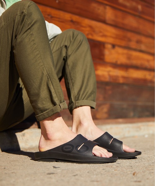 OOFOS® 製品に使われている特殊素材 OOfoam は、前進力を生む事を目的とした一般的な EVA 素材のミッドソールと異なり、衝撃の反発を 37% 抑えることができ着地による足裏への衝撃を軽減することができます。そのため膝、腰、背中にかかる負担を軽減でき、また人間工学に基づいて設計されたフットベットにより、足を優しく包み込み、土踏まずをしっかりサポートします。
