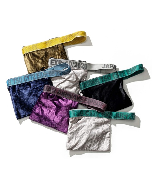 空港で使われていた貨物運搬用の頑丈なスリングベルトを使用。内側にポケット付。