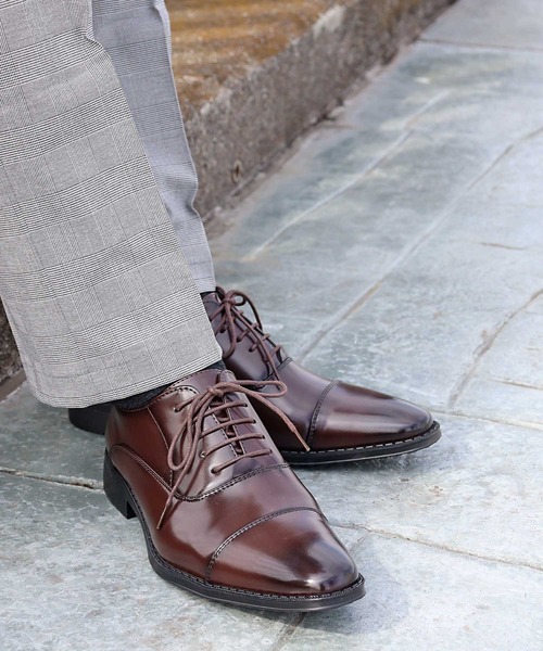 様々なスタイルに合わせやすいスクエアトゥビジネスドレスシューズ。