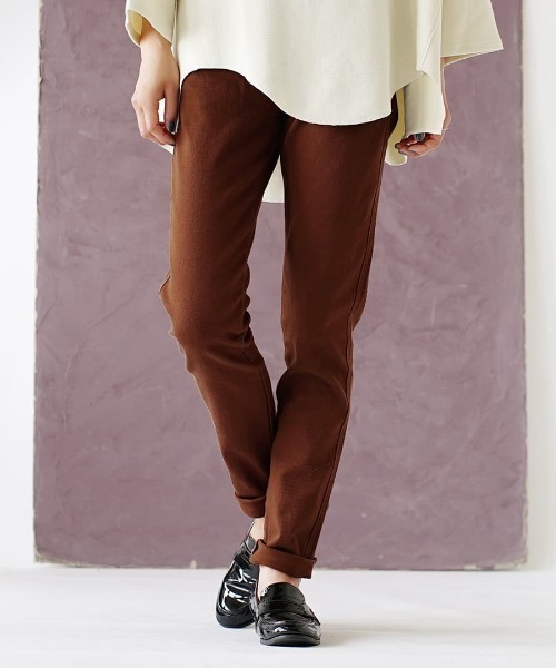 チノパンらしい定番のストレートシルエットパンツ。女性らしい着こなしにあうよう、