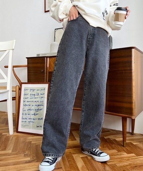 ・脚長効果も発揮してくれるストレートシルエットは、キレイめにもカジュアルにも合う万能アイテムです!