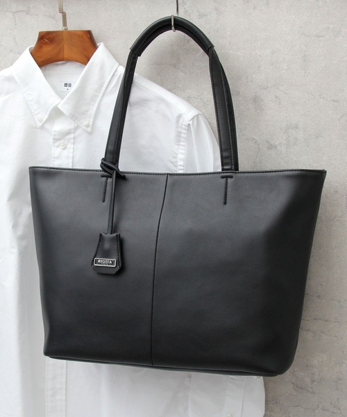 程よい艶感の素材とミニマルなデザインがマッチして大人な雰囲気のトートバッグです。かっちりとしたスーツやジャケットにはもちろん、カジュアルにも合わせられるので、オンオフ兼用できそうです。タブレットが収納できるスペースや、A4ファイルやペットボトルが楽に収まるメイン収納スペース、バッグが自立可能なしっかりとした作りなど、ビジネストートとして必要な機能を網羅しています!握りやすいしっかりとしたグリップや、肩掛けしやすい長さのハンドルなど、実用性を意識した細かな気配りが嬉しいポイント。