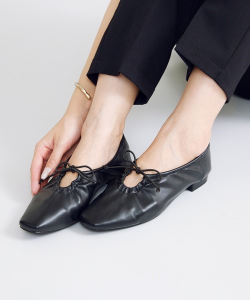 『可愛さもフィット感も、きゅっとまとめる リボンギャザー フラットシューズ』