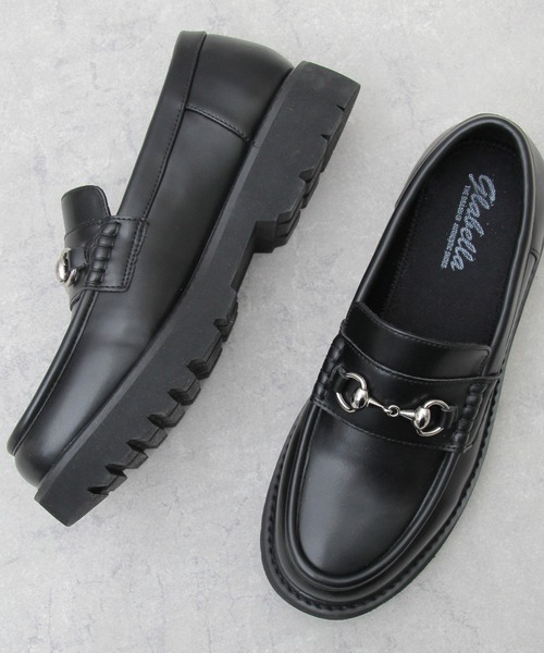 タンクソール風の分厚いアウトソール、ボリューム感のあるラスト、丸みを帯びたラウンドトゥを合わせ、定番ローファーをダッドな雰囲気に。