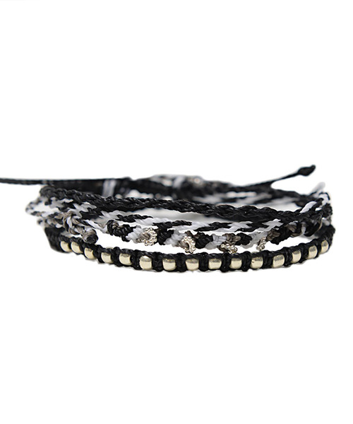 ポリエステル素材のワックスコードで編みこんであり、留め具やパーツは国産具材を使用しております。