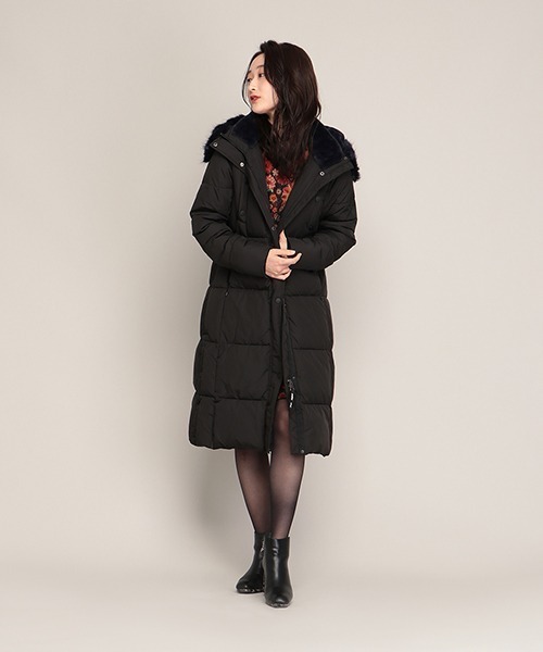 たっぷりとしたロング丈で包み込まれるような着心地のコート。前後に2本ずつ切り替えラインを入れ、スマートな縦のシルエットを強調します。サイドのボタン付きスリットやリブ仕様の袖口など、寒さを乗り切るアイデアがたくさん。フードのフェイクファーを付けると、リッチな雰囲気に着こなせます。裏地付き。