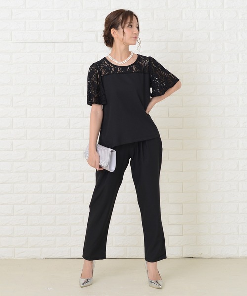 レース切り替え半袖パンツドレスセットアップ
