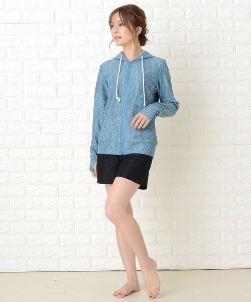 レース柄ラッシュガード ショートパンツ 2点セット