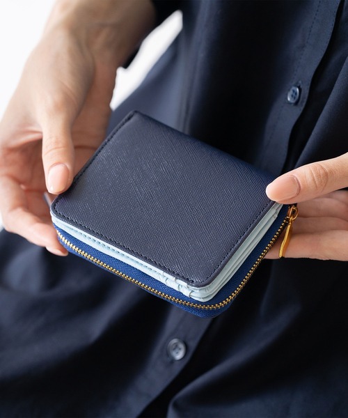 小銭入れ部分はラウンドファスナーを採用、ファスナーでコインケース部分だけ出すことができレジでもスムーズに会計できます。