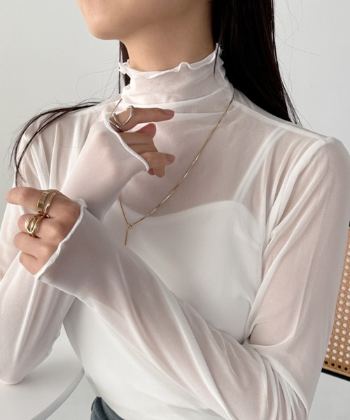 程よい透け感が上品で女性らしいハイネックシアーインナー。