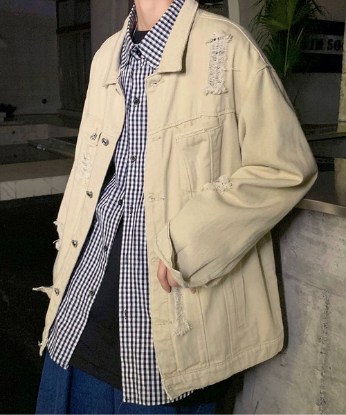 存在感抜群のダメージデザインが魅力のデニムジャケットは今季トレンド性の高い逸品。