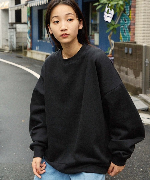 シンプルに纏めた単色無地の雰囲気抜群のスウェットトップス。