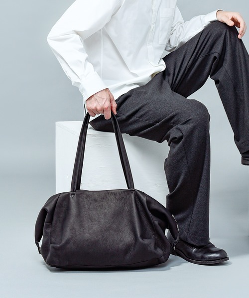 シンプルながら天の開閉仕様や底のタックなどを利用してドレープ感ある雰囲気に仕上げたボストンバック。