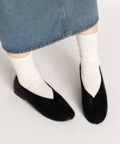 足入れが楽なVカットの履き口とラウンドトゥで、ベーシックな可愛いフォルムに。