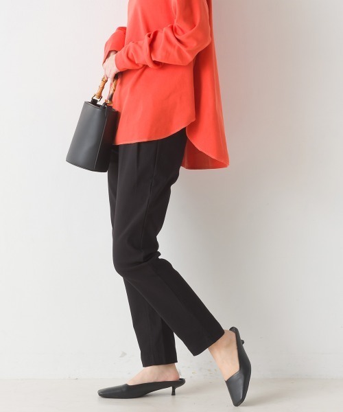 表面はさらりとした肌触りが魅力の美脚テーパードパンツ