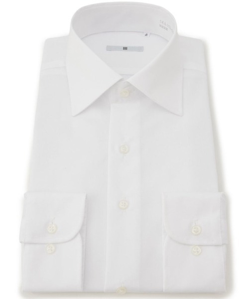 横方向へ大きく広がる襟が特徴。顔周りをシャープに見せ、ネクタイを締めても美しいシルエットを保つモダンなスタイルです。